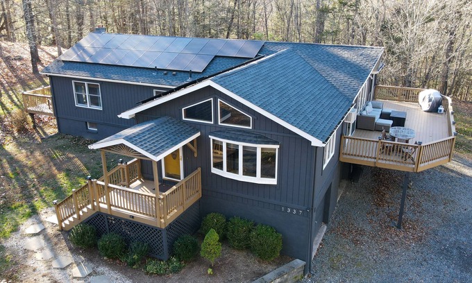 A private newly renovated retreat located near bustling Upstate destinations and towns. The stylishly curated home includes an open concept layout, 2 bedrooms, office with pull out double bed, 3 bathrooms, a fireplace, and a wrap-around deck as well as a hot tub! The newly renovated basement also includes an additional living space with a bathroom, Queen murphy bed, and a pool table! Located 12 minutes from New Paltz and 13 mins from Kingston.