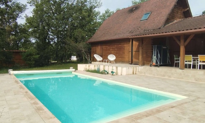 Espech heated swimming pool Dordogne is located in Peyrillac-et-Millac. Espech heated swimming pool Dordogne provides accommodation, featuring Pet Friendly, Pool, Security/Safety, among other amenities. This House features Pet Friendly, Pool, Security/Safety, to make your stay a comfortable one.