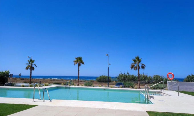 Offering a garden, Espectacular Apartamento en primera linea de playa offers accommodations in Torrox. This beachfront property offers access to a balcony, free private parking, and free Wifi. The apartment provides a pool with a view and an elevator. Providing a terrace, this apartment also provides guests with a flat-screen TV, a well-equipped kitchen with a dishwasher, an oven, and a microwave, as well as 2 bathrooms with a a bath or shower and a hair dryer. The accommodation is non-smoking. Playa de Torrox is a 2-minute walk from the apartment, while Gibralfaro Viewpoint is 28 miles away. Malaga Airport is 36 miles from the property.