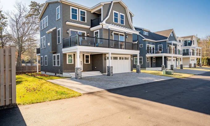 Welcome to Driftwood Beach Estate! Discover the modern luxury of this 5-bedroom beach house! Situated in Saco, ME, it's only a quick stroll from the beach. Perfect for families seeking comfort and entertainment, it includes 4 bathrooms, Peloton bikes, Xbox, and a workspace!