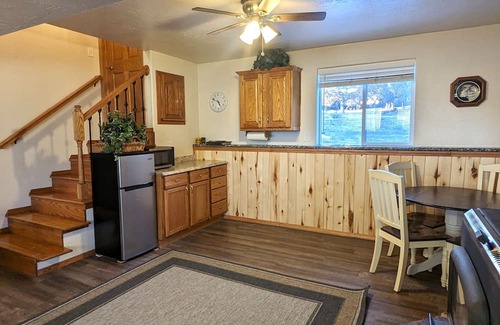 With colorful mountain vistas surrounding a quiet small town located between Capitol Reef and Fish Lake, lies this small garden-apartment for your vacation stay. Outdoor activities galore including Capitol Reef National Park, hiking, ATV trails, overlooks, FISHING, boating, and Pando the Quaking Giant. All this within proximity to the amazing Mighty 5 National Parks ofUtah. From high mountain lakes to low desert cathedrals, come visit this cozy stay and enjoy your vacation.