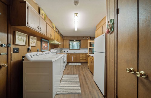 Welcome to beautiful Lake Eufaula! You’ll enjoy this spacious and comfortable 4 bedroom, 2.5 bathrom house. Kitchen comes with everything you could possibly need, including the coffee bar. Grill and patio make a great spot to cookout with friends and family. This little gem sleeps 9-10 people so come relax in the hammock, watch the sunset and enjoy the recreational options all around! The interior features the 4th bedroom/2nd living room depending on your needs. Daily deer and wildlife sightings! Centrally located minutes from Eufaula Cove and Downtown Eufaula with popular restaurants and other exciting attractions. Parking includes a circle drive and a straight drive with clearance enough to park boats or trailers on road or in the driveway.