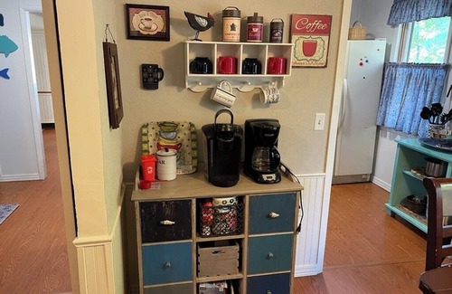 Ruby Cottage on Lake Eufaula boasts a wraparound deck for grilling, games, and sunsets. This two-bedroom, two full bath lakeside cottage offers comfortable sleeping for up to 8. Kitchen has full amenities including stove, oven, dishwasher and refrigerator. Cooking and dining amenities are also included. Extensive game room has pool table, shuffleboard, and arcade games for time off the lake. Kayaks, canoe, and paddle boat are available for a fun diversion. Nearby Eufaula hosts a myriad of restaurants and entertainment including mini and frisbee golf. Lake house has full view and easy access to the nearby Fountainhead Marina located in Eufaula State Park. Close to Eufaula State Park which has hiking, biking, and swimming access. Checotah is just up the road offering quick supply and fast-food buying trips. We are pet friendly and offer a doggie door and small fenced area for your furry kids. Come and stay, fish, swim and relax at Ruby Cottage, the gem of Lake Eufaula.