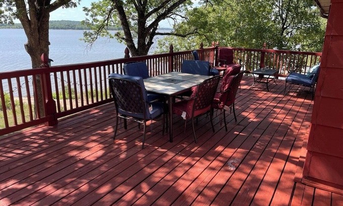 Eufaula Lake front access w/wraparound deck and spectacular views! Pet friendly! has 2 Bedrooms , 2 Bathrooms, and max occupancy of 8 people. The minimum rental for this property is 1 nights, but this can change depending on the season you plan on staying. Previous guests have given good rated it, and VRBO labeled it a top-rated House because of the excellent services rendered by the owner or manager of this House, and has consistently provided great experiences for their guests. Most families or guests that use it recommend it to their friends and some of them are repeat guests. House has a friendly neighborhood, and the Checotah has interesting places to visit. If you want to learn more about the House in Checotah, such as places to visit and things to do nearby, you can check below to learn more.