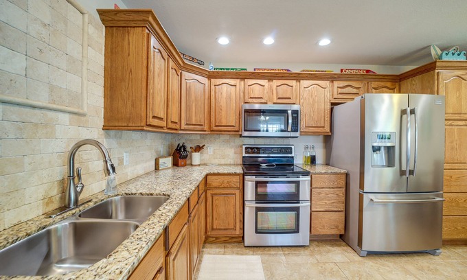 As you settle into this 4-bedroom, 2-bathroom rental, you'll find air conditioning, a ceiling fan, and a desk. The kitchen is equipped with an oven, a stovetop, and a dishwasher, as well as an ice maker, a microwave, and cookware.