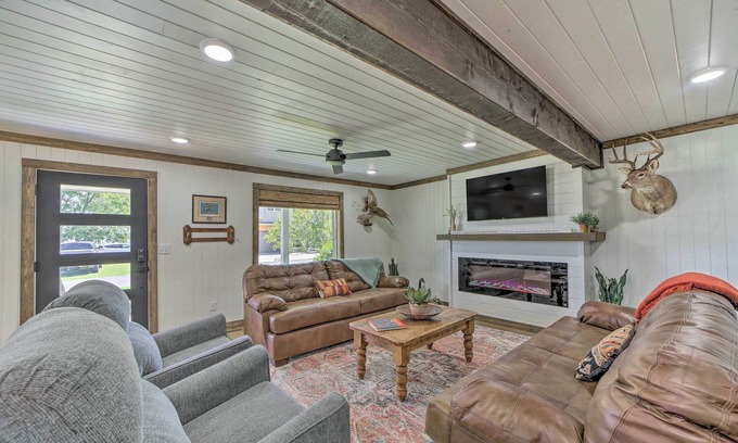 Enjoy Lake Eufaula’s beautiful shores and sandy beaches from the comfort of this 4-bedroom, 2-bath home! Boasting a prime location, full kitchen, free WiFi, and more, this vacation rental has everything your family and friends need to get away from it all. Spend your days outside at North Beach and Yogi Bear's Jellystone Park, or visit local shops and eateries on Main Street. When the evenings hit, enjoy stunning sunsets from your own private yard or cozy up around the fireplace with loved ones.