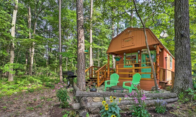An extraordinary outdoor adventure awaits at this 1-bathroom vacation rental! Perfect for couples or solo travelers, this charming studio is nestled in a quiet wooded setting with lake access and hiking trails nearby. Step into the backyard and enjoy plenty of amenities like a private pool, spacious porch, propane grill, bonfire ring, and more. You can also head out to some popular attractions and historical sites like Quigley’s Castle, War Eagle Cavern, and Eureka Springs Historical Museum.