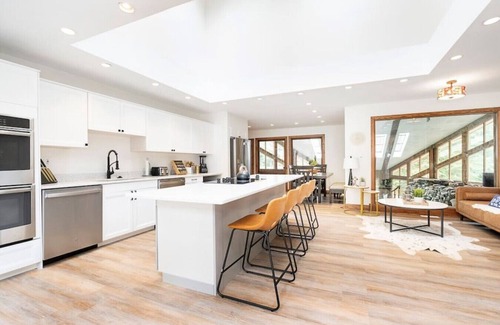 Secluded luxury is the theme for this sophisticated resort home. Swim in the heated indoor pool year-round and meet up with friends at the bar all without stepping foot outside! The 6500 sq ft house features 7-BDs, 4.5-BAs, an indoor atrium with heated pool + multiple social areas. Outdoors, 65 very private acres offer a lake for fishing, 4 barns, lovely forest views, and plenty of space to roam. Families, friends, corporate events, or anyone seeking a perfect group getaway will find it here!
