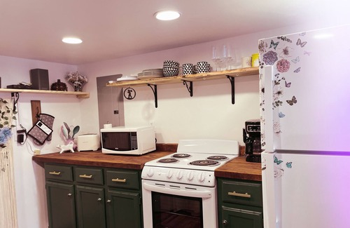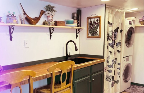 Nestled in the heart of Lake Cumberland, this enchanting tiny house offers a unique experience for 4-6 guests. Radiating whimsical charm, it's cozy interior boasts all essentials- a fully equipped kitchen, laundry, wifi and a large TV with a roku for streaming. This peaceful retreat is centrally located, far enough away from the hustle and bustle of the city, but only 15-20 min away from Wolf Creek and Lee's Ford Marinas. We're 10 min from Pulaski Park and Haney's Appledale Farm.