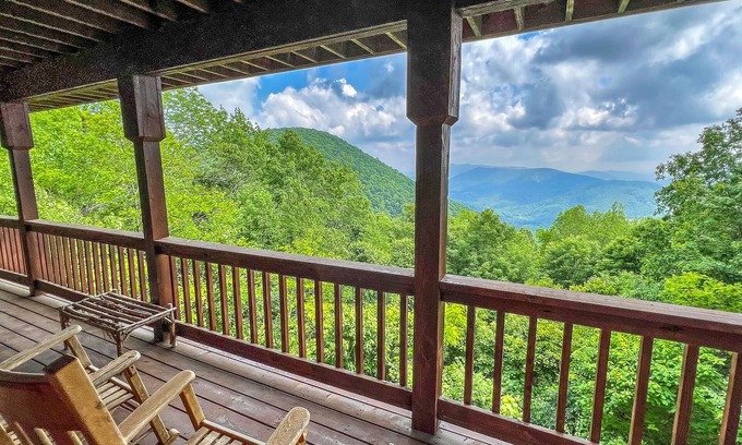 Jasmine Heights is a four bedroom, three bath log cabin and offers every amenity for a wonderful stay in the Carolina Mountains and a view like no other!