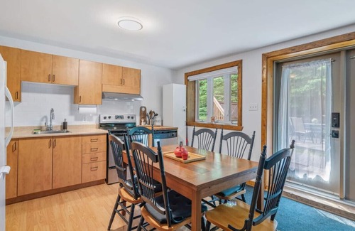 Cozy up by the fire, cook a home-cooked meal in the well-stocked kitchen, or unwind on the outdoor patio surrounded by stunning natural scenery. With all the amenities you need and a touch of rustic charm, this chalet will make your next vacation truly unforgettable. Book today and experience the best of Val-David!
