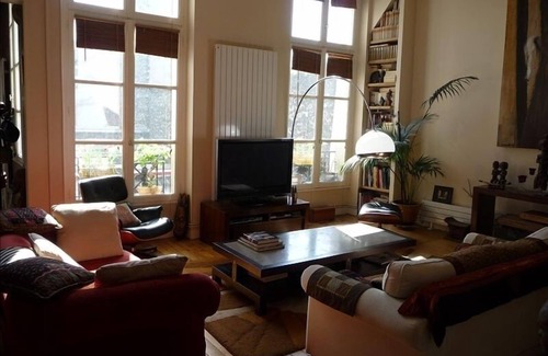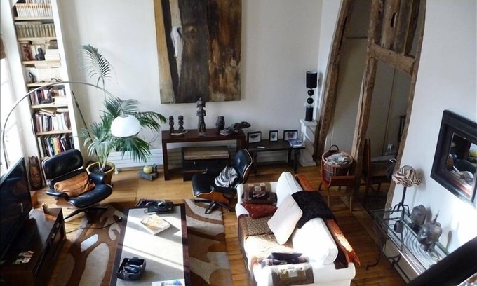 Exceptional apartment of 130 m2 , duplex, in a XVII s building, 2nd and 3rd floor, quiet and very clear, in the pedestrian area of Montorgueil, close to the Louvre museum, the Beaubourg museum, the Parc Royal's garden and the Tuileries's garden. Very lively area with lots of shops and restaurants. 3 bedrooms, 1king's bed, 1 queen's bed in mezzanine, 2 singles beds, 1 sofa bed in the living room. TV and internet wireless. Direct access to Roissy and Orly airports (RER). Close to metro stations (Sentier/Reaumur-Sebastopol/ Etienne Marcel).Transportation: RER A, B, D (Châtelet Les Halles), Lines 1, 3, 4, 7, 11, 14.