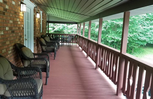 Serenity Lodge is something that is just hard to find. It sits in total privacy on 14 gorgeous acres complete with a fishing pond and bubbling creek yet only 5 minutes from the highway. The home has been completely remodeled in 2017. There are five bedrooms, 3 full baths, a gourmet kitchen, a 10 foot dining table, an outside porch that wraps around 3 sides of the house and a saloon bar and recreation room in the lower level . The back patio has a 7 person hot tub as well as a gas grill. The home has wifi internet and satellite TV. Dogs are allowed. A large fenced yard is in the rear of the house off the patio for kids and pets. Conveniently located in the heart of all the area activities in the New River Gorge area as well as Summersville Lake.