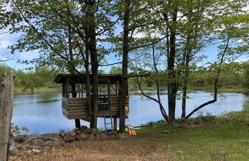 Enjoy your day napping on the hammock, paddling on the pond, playing outside or in the treehouse.