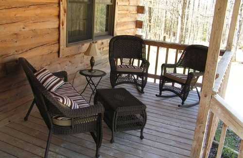 Bingo's Bungalow is a delightful place that is inviting and accommodating to families and larger groups. The cabin is tastefully appointed with leather furniture, modern appliances and a completely equipped kitchen and laundry. There are numerous areas to enjoy with friends and family. A large comfortable front porch with wicker furniture and a porch swing. A brightly decorated living room with leather furniture including two oversized amazingly comfortable recliners and a sleeper sofa. A dining area that can seat up to 8. A covered back porch with seating for 12. The large loft area has 2 queen beds and 2 couches that fold into beds as well as a second TV and DVD player. To make it absolutely perfect there is a detached game room that has pool, air hockey, foosball and darts. The huge yard has horseshoes and corn hole too. We are dog friendly with a fenced back yard right off the back deck. This cabin sits on over 5 private acres.