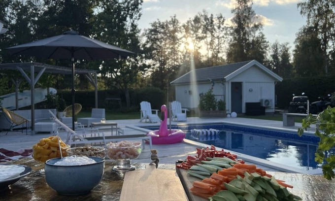 Best-rates for the Lekeryd villa starts from $543 per night with includes Security/Safety, Bedding/Linens, Wellness Facilities, Fireplace/Heating, Barbecue/Outdoor Cooking, Child Friendly, Hot Tub, Parking, Pool, Internet, Kitchen, Laundry, Air Conditioner StayAndPlay offers fully equipped golf villas, golf hotels, golf resorts, luxury golf cabins, and exclusive golf retreats, making it easier than ever to find your perfect golf escape — ideal for families, peaceful getaways, or pet-friendly retreats with the whole crew.