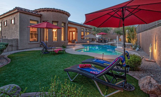 Best-rates for the Las Sendas house starts from $360 per night with includes TV, Private Pool, Bedding/Linens, Kitchen, Laundry, Air Conditioner, Pool StayAndPlay offers fully equipped golf villas, golf hotels, golf resorts, luxury golf cabins, and exclusive golf retreats, making it easier than ever to find your perfect golf escape — ideal for families, peaceful getaways, or pet-friendly retreats with the whole crew.