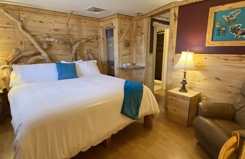 Now you can book the ENTIRE VACATION RESORT! Our beautiful creekside property is on over an acre with a game room, massage/yoga/art studio, garden, fire pit, commercial kitchen, outdoor covered party patio with additional full kitchen, BBQ and more! Room for 36 guests with 11 units & 20 beds!