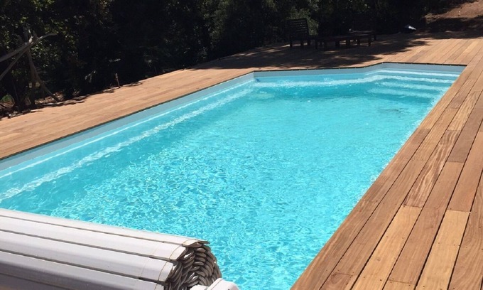 The terraced park offers shade and hammocks to accommodate your naps, and a clearing with wooden terrace welcoming a large swimming pool of 10 * 4 m (equipped with a safety curtain).