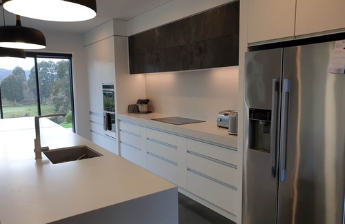 As you drive up our private gated driveway through the walnut trees you will see our architectural 2 story macropcarpa clad home. Hidden from the road is our new house, designed to entertain the family. We have a high end kitchen with all facilities, our open plan dining and tv room steps out onto a large covered concrete patio overlooking the hamurana hills and stunning North facing rural views. The 3 bedrooms are spacious and with 2 large separate bathrooms and 3 toilets you will not be waiting to use the facilities.