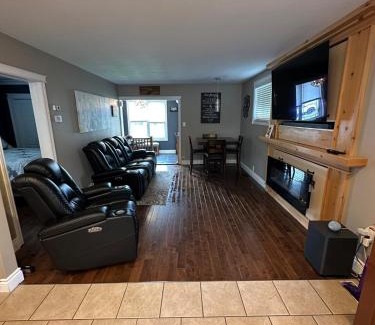 Executive Home is located in Timmins, just 1.1 miles from Timmins Underground Gold Mine Tour and 2.8 miles from Spruce Needles Golf Club. This vacation home offers air-conditioned accommodations with a patio. There's an outdoor fireplace and guests can use free Wifi and free private parking. Offering a terrace and garden views, the spacious vacation home includes 3 bedrooms, 2 living rooms, flat-screen TV, an equipped kitchen, and 2 bathrooms with a walk-in shower and a bath. Towels and bed linen are offered in the vacation home. There's also a seating area and a fireplace. For guests with children, the vacation home features outdoor play equipment and a baby safety gate. After a day of skiing, cycling, or hiking, guests can relax in the garden or the shared lounge area. Popular points of interest near Executive Home include Timmins Museum National Exhibition Centre, Shania Twain Centre, and Hollinger Golf Club. Timmins Victor M. Power Airport is 8.1 miles from the property.