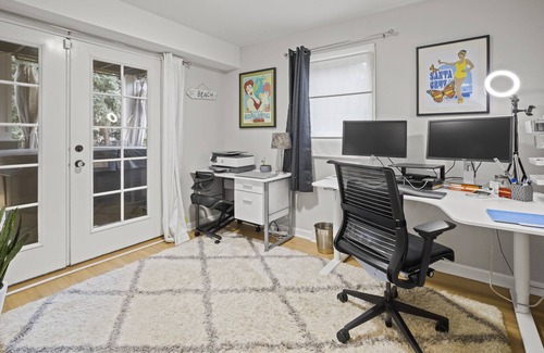 The home has three bedrooms (1 King, 2 Queens), three full baths, two office spaces, including a large mudroom to keep all your outdoor adventure gear organized and easily accessible. In the basement there is an additional big screen TV, and massive couch perfect for lounging and watching movies. (If a different bedroom configuration would be preferable, we are open to discuss possibilities with extended leases.)