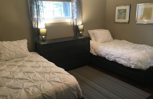 The bedrooms are tastefully and thoughtfully decorated with the guests' comfort in mind. Bedroom #1 is extremely spacious, complete with a King bedroom suite! Simply close the blackout blinds and crawl under your duvet on a medium-firm King mattress and enjoy a good night's rest! Bedroom #2 is equipped with 2 Twin beds, firm Eurotop mattresses and modern furnishings! There is plenty of space in the dresser and closet for your belongings. This room also has full room-darkening blinds.