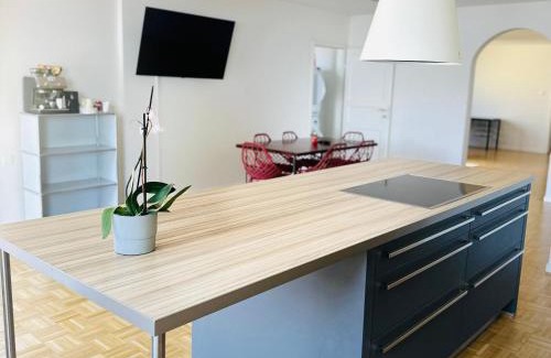 A recently renovated apartment, Exklusives Apartment mit traumhaftem Seeblick & Balkon offers accommodations in Rorschach. Both Wifi and private parking are accessible at the apartment free of charge. Outdoor seating is also available at Exklusives Apartment mit traumhaftem Seeblick & Balkon. Featuring a balcony and lake views, the spacious apartment includes 3 bedrooms, a living room, flat-screen TV, an equipped kitchen, and 1 bathroom with a shower. Towels and bed linen are available in the apartment. The accommodation is non-smoking. Olma Messen St. Gallen is 7.8 miles from the accommodation, while Dornbirn Exhibition Center is 15 miles from the property. St. Gallen-Altenrhein Airport is 3.1 miles away.