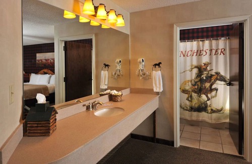 Immerse yourself in history at our quaint hotel next to the Pony Express Museum and River Bluff Trail Park. Relish the Old West vibe, themed suites with rich wood furnishings, and modern comforts like a fitness room, pool, bar, and complimentary breakfast. Perfectly situated for exploring local attractions and trails, our warm service, delectable American cuisine, and rustic charm offer a timeless escape. Experience a unique adventure at our inviting woodland haven.