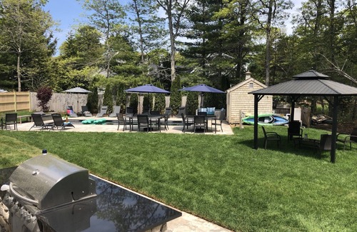 A spacious and welcoming home in a wonderful location. This home allows plenty of room for multi families to vacation together. The large fenced in yard with built in gas fire pit, and inground pool with sunken hot tub also allows for all to gather and enjoy the Cape Cod sunshine , With a chef's kitchen and open living area all can cook, enjoy a cocktail and gather. The home is in a great proximity to beaches, boating and more. Mid Cape location allows access to prime Cape Cod attractions, beaches and Marinas.
