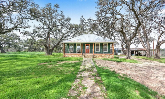 Welcome to "The Green House" at Lighthouse Hill Ranch, where tranquility and adventure await amidst the ancient oak trees of Johnson City, TX. Nestled within walking distance of the pristine waters of the 6-8 acre Miller Creek lake system, this charming retreat offers a serene escape for up to 10 guests.