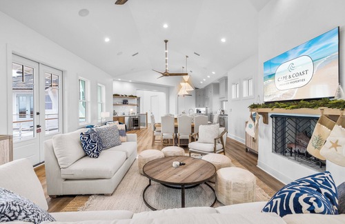 Welcome to Time & Tide, a striking residence centrally located in Sugar Sand, designed for an unforgettable seaside getaway. Discover a private heated pool with an adjoining spa for your enjoyment, and broad decks overlooking the ocean that invite serene moments. Make your visit even better with access to a summer kitchen ideal for outdoor celebrations and $400 credit for adventure gear rental to make every minute enjoyable.