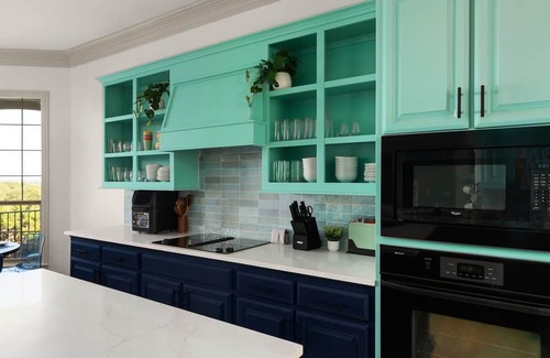 Adjacent to the living room, the gourmet kitchen is a dream for both casual cooks and culinary enthusiasts. Outfitted with top-of-the-line stainless steel appliances, a spacious island with bar seating, sleek quartz countertops, and custom cabinetry, you'll find everything you need for anything from morning pancakes to elegant dinners. The open layout flows seamlessly into a stylish dining area, with a large table that seats your entire group comfortably, ideal for shared meals, board games, or working remotely in a beautiful.