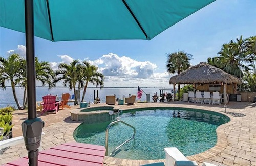 Expansive Riverfront Home Heated pool spa LargeTiki Bar & Outdoor Kitchen is located in Caloosahatchee. Expansive Riverfront Home Heated pool spa LargeTiki Bar & Outdoor Kitchen provides accommodation, featuring Fireplace/Heating, Pet Friendly, Ocean View, among other amenities. This House features Fireplace/Heating, Pet Friendly, Ocean View, to make your stay a comfortable one.