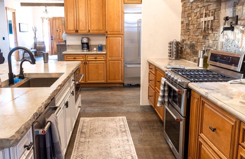 The home is single-level, ADA compliant including ADA showers. For the little ones, you’ll find a pack-n-play and high chair. We even have a dedicated cabinet of cooking and serving items for those with celiac for use upon request. Your furry friends are welcome and pampered with a comfy dog bed, a convenient dog wash in the laundry, as well as a dog crate and food bowls.