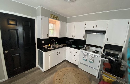 In the center of Bandera lies a lovely two-bedroom house that provides a peaceful retreat for your upcoming trip. As you step inside, you'll be greeted by a cozy living room, perfect for unwinding after a day of exploring the nearby Medina River. The fully stocked kitchen is equipped with a stove, oven, refrigerator, and all the necessary appliances, allowing you to prepare delicious meals during your stay. Enjoy your culinary creations at the dining table, or step outside and fire up the grill for an alfresco dining experience.