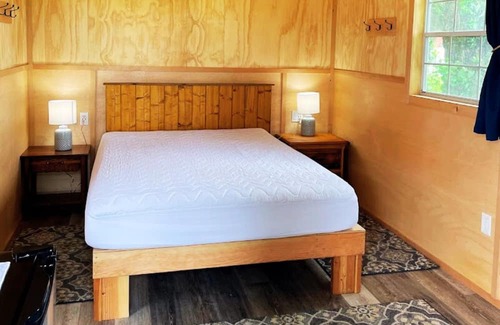 The Little Barn provides a rustic cabin ambiance, complete with a cozy bed and a portable heater, eliminating the need for you to pack your own camping gear or tent. Please be sure to bring your own sleeping bag or bedding, as it's a straightforward cabin experience - think of it as camping in a room equipped with a heater and a comfortable bed or mattress.