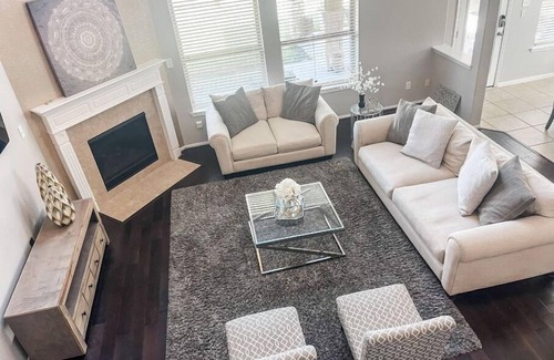 Experience relaxation and comfort with your entire family at this spacious Spring vacation rental. With 4 bedrooms, 3.5 bathrooms, a media room, and a fully equipped kitchen, this residence offers something for everyone. This home is designed to accommodate families, couples, and even those on business trips. The shaded covered patio serves as an ideal retreat, perfect for savoring a morning cup of coffee in peaceful serenity or unwinding after a long day.