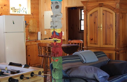 Hike the trails, ride the scenic Railroad or take a ride on a glider! For whitewater rafting, go for a thrill on the Ocoee River, or take a scenic float down the Hiwassee River gorge. All a short distance from house! Or you can “hangout” by the pool, soak in the hot tub! The game room boasts a foosball table, video games, and other diversions, ensuring there's something for everyone to enjoy. Venture outside to the balcony, fire pit, and outdoor play area, where you can soak up the sun, roast marshmallows, or let the kids and pets can burn off energy! The Hangout consist of two structures separated by the pool. Main house features a large living room, dinning room and completely stocked kitchen. One bedroom and full bath along with laundry room on main level. The upstairs is large master bedroom, full bath and an futon in alcove for extra guest. Across from main house is separate structure with a downstairs game room, equipped with ping pong table, air hockey along with several board games. Also has full refrigerator, bar sink, half bath. Also provides a queen bed and futon. Great place to open the windows and fall asleep to the sounds of crickets and frogs! The upstairs has two queen beds, one single along with sitting area, tv, coffee maker, mini fridge and full bath. Plenty of outdoor spaces to spread out or gather!
