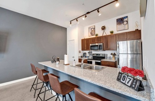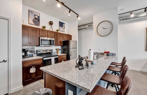 Experience a stylish stay at this centrally located downtown apartment. With spacious, thoughtfully decorated interiors, it offers comfort, safety, and security. Just a short walk to local bars, nightlife, and attractions like the FedEx Forum and the National Civil Rights Museum. Ideal for sports fans, it's minutes from Grizzlies and UofM games. Additionally, it's a 5-minute drive to St. Jude and other nearby hospitals, making it perfect for both leisure and business travelers.