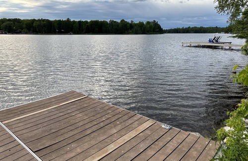Enjoy the large deck overlooking the lake, a dock for swimming or boating, and a fire pit for evening campfires.