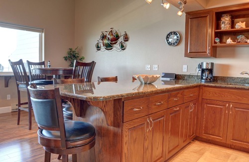 If you're looking for fishing, whale watching, sun and coastal fun, look no further than Bay Echo! Set in downtown Depoe Bay, this condo features a modern interior coupled with gorgeous views and an ideal location, all at a great price. Located on the accessible first floor, the kitchen offers granite countertops, dark hardwood cabinetry and stainless steel appliances. Right next to the open kitchen is the living room with incredible views of the Pacific Ocean and access to a private deck. Owners and guests have sighted whales from the deck or living room at only 100 yards away, even in the off-season. Two bedrooms and a large full bathroom are located on the first floor along with a twin sleeper sofa. The primary bedroom offers a king bed, and the second bedroom offers a queen bed. The second floor of this home is a large loft with a full-twin bunk bed and separate twin bed that make for the perfect children's retreat. Bay Echo is located within a few minutes walking distance to dozens of shops and restaurants. Below the condo are storefronts right off of Highway 101 where you can go souvenir shopping, and great food can be found in eateries such as Thai Bay View Kitchen and Mazatlan to the south and Tidal Raves and Tide Pool Pub to the north, all just a few blocks away. The world's smallest harbor in Depoe Bay also offers you some unique experiences on fair weather days- whale-watching and deep-sea fishing! In addition to these activities, Depoe Bay is centrally located between Newport and Lincoln City, both of which are major coastal cities with a plethora of things to do. Just over two hours from either Portland or Eugene, experience Depoe Bay from this luxurious condo today, and enjoy all that the Oregon Coast has to offer!