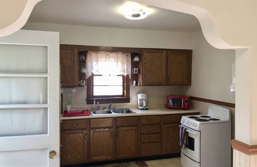 This authentic1950s bungalow house is cozy with USA handmade quilts, original typewriter artwork and real manual typewriters that you can use! It's a fun history lesson within the Historic District of the oldest town west of the Mississippi River.