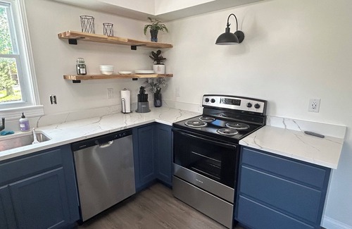 Nestled in the heart of Bardstown, this charming vacation rental offers a cozy and inviting retreat for your next getaway. As you step inside, you'll be greeted by a fully stocked kitchen, complete with a stove, oven, grill, microwave, dishwasher, and all the necessary appliances and utensils to prepare delicious meals. Unwind in the comfortable living room, where you can enjoy the smart TV with satellite or cable channels. Refresh yourself with a load of laundry, thanks to the convenient in-unit washer and dryer.