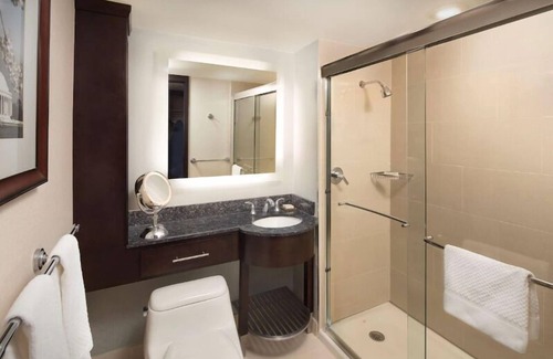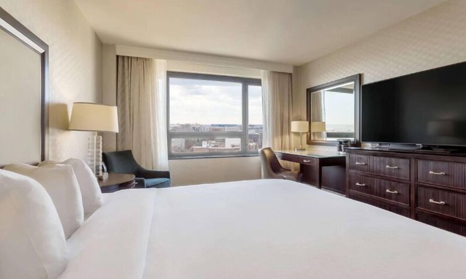 The hotel offers guest rooms and suites, complete with premium bedding, flat-screen TVs, and work desks with ergonomic chairs. Guests can enjoy free access to the seasonal outdoor swimming pool and the fitness center. There is also a variety of dining options with two onsite full-service restaurants, bars, and a coffee shop. For visitors looking to stay connected, the hotel offers complimentary high-speed Wi-Fi and a 24-hour business center for those working on the go; Add to that business facilities for meetings, and event spaces for any type of affair.