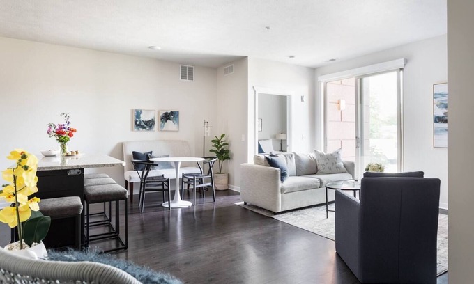 This modern condo is on the 1st floor of the Trailside45 building, located next to the paved TART trail. This updated condo features newer appliances, furniture and plenty of amenities. Enjoy an open layout with a fully stocked kitchen, an island with extra seating for gathering, and the dining banquette for enjoying a cup of coffee or getting some work done. You can walk/bike/drive to downtown Traverse City (TC), beaches and restaurants. Rent an ebike from Pedego and zip up to Suttons Bay or Elk Rapids. Multiple skiing, snowmobiling and snow sledding options nearby. Great all season place to stay! A private chef is available if you want a personalized dinner for your group. Reach out for more information.