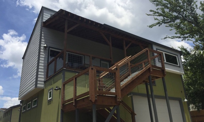 You'll love the Upper Flat's deck view of an iconic Austin moontower and beautiful tree tops. You won't believe you are downtown with so much green! It has a complete kitchen, full bath, queen size bed, pull out sofa and even a secluded reading/workspace. It is located just a few blocks from great restaurants and bars.