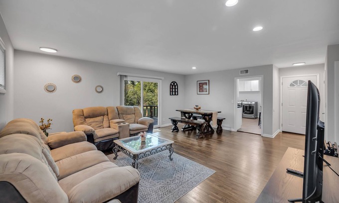 Just 5 minutes from everything! Whether it’s an event at the Tulsa Expo center, an excursion to the water park, a downtown adventure, or time spent with family and friends at the gathering place, this is the perfect property to enjoy your stay. The house features 2 kings beds, 2 full beds, a twin bed, and two queen air mattresses. That’s enough room for 13 people to sleep comfortably!