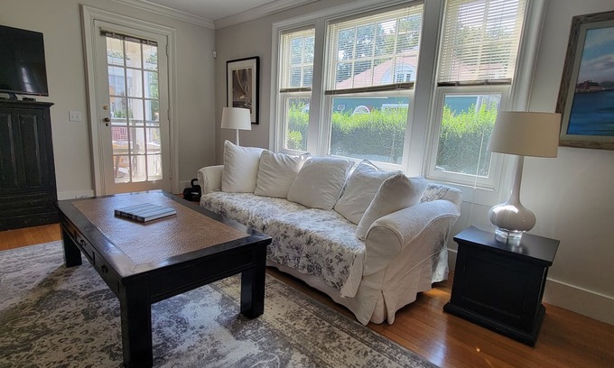 ~ AVAILABLE ONE MONTH ONLY ~ JULY 2024 ~ PETS WELCOME ~Leave the ordinary behind! This exquisite home lies nestled in one of Newport finest tree-lined neighborhoods, a short walk from Green End Pond, Easton's Beach, Hotel Viking, and the Cliff Walk. Endlessly charming from front door to back porch, the classic architecture is complemented perfectly by the designer furnishings. Quality of craftsmanship, attention to detail, and superior materials are apparent on each of the three levels of living. The first floor comprises an entertainer's kitchen, adjoining dining room, half bathroom, and a generous living room with fireplace. Upstairs we find three bedrooms, a full bathroom, and a study with attached solarium. The icing on this sumptuous cake is the top floor primary suite, flooded with natural light, adorned with an adorable fireplace, and accompanied by its own full bathroom. The pictures & video say it all, but in-person viewings are encouraged. ~ ALL UTILITIES INCLUDED ~ PLEASE NOTE LANDLORD LIVES ON SITE ~