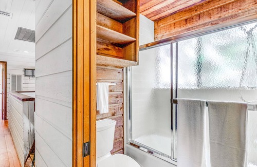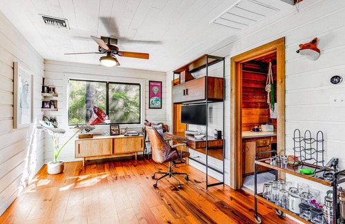 Skyfall is a true Zen retreat nestled amongst a nearly seven-acre forest of native trees in a peaceful canyon setting near a wilderness preserve. Due to this, it is asked that only registered guests (six at most) visit the property and that no parties occur (noise and occupancy monitors are present). In addition to its serene neighborhood, this home is near Lake Travis and a 12-minute drive from Downtown Austin. Speaking of Austin, racing fans will love being less than 10 miles away from Formula One racing. For something a bit more mellow, Austin Country Club hosts the Dell Technologies Match Play, so golf enthusiasts can watch the pros tee off while only having to drive five miles. If you're staying in early October, check out the Austin City Limits Music Festival for an experience you'll never forget. South by Southwest also occurs nearby and is the largest festival of its kind in the world. Often sporting more than 2,000 acts, it's the musical experience of a lifetime.